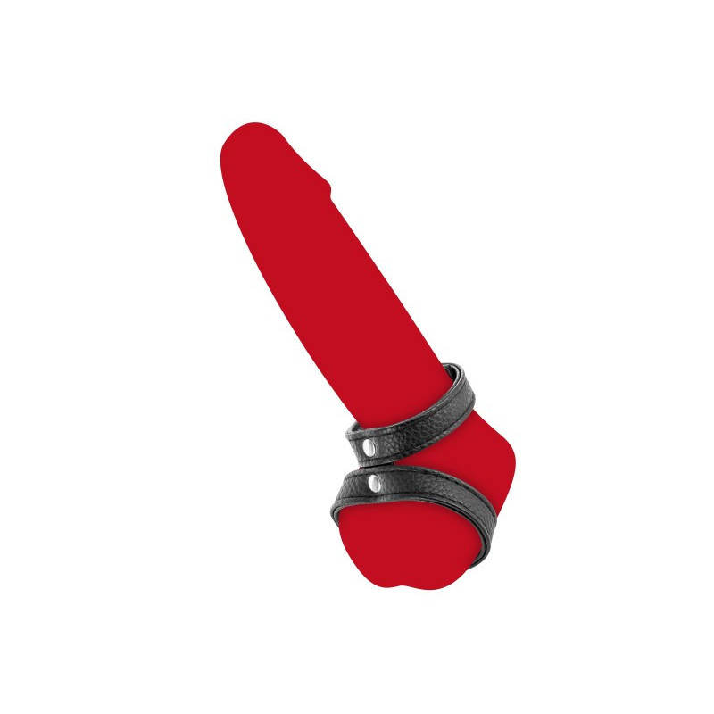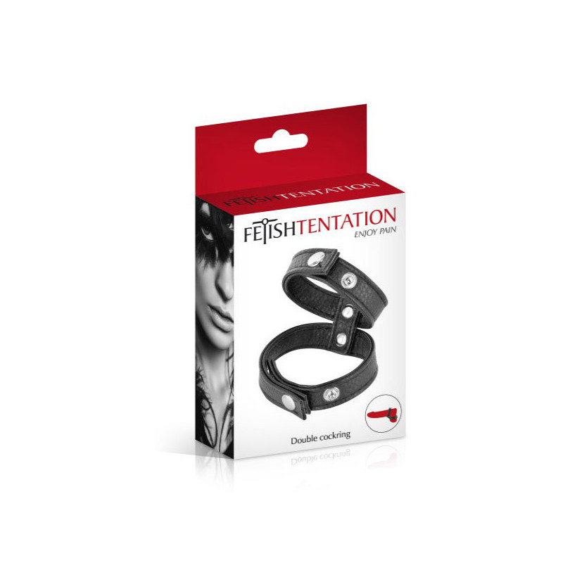 Proposé par Fetish Tentation, ce double cockring de haute qualité en simili cuir et ajustable.